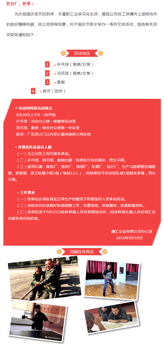 鑫匯公司關(guān)于舉辦國慶節(jié)文體活動的通知